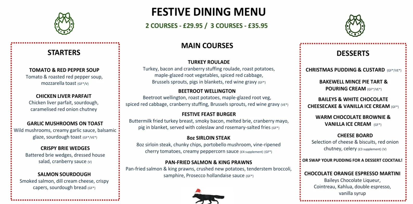 For the festive menu order form, email us at: info@foxinndarsham.co.uk